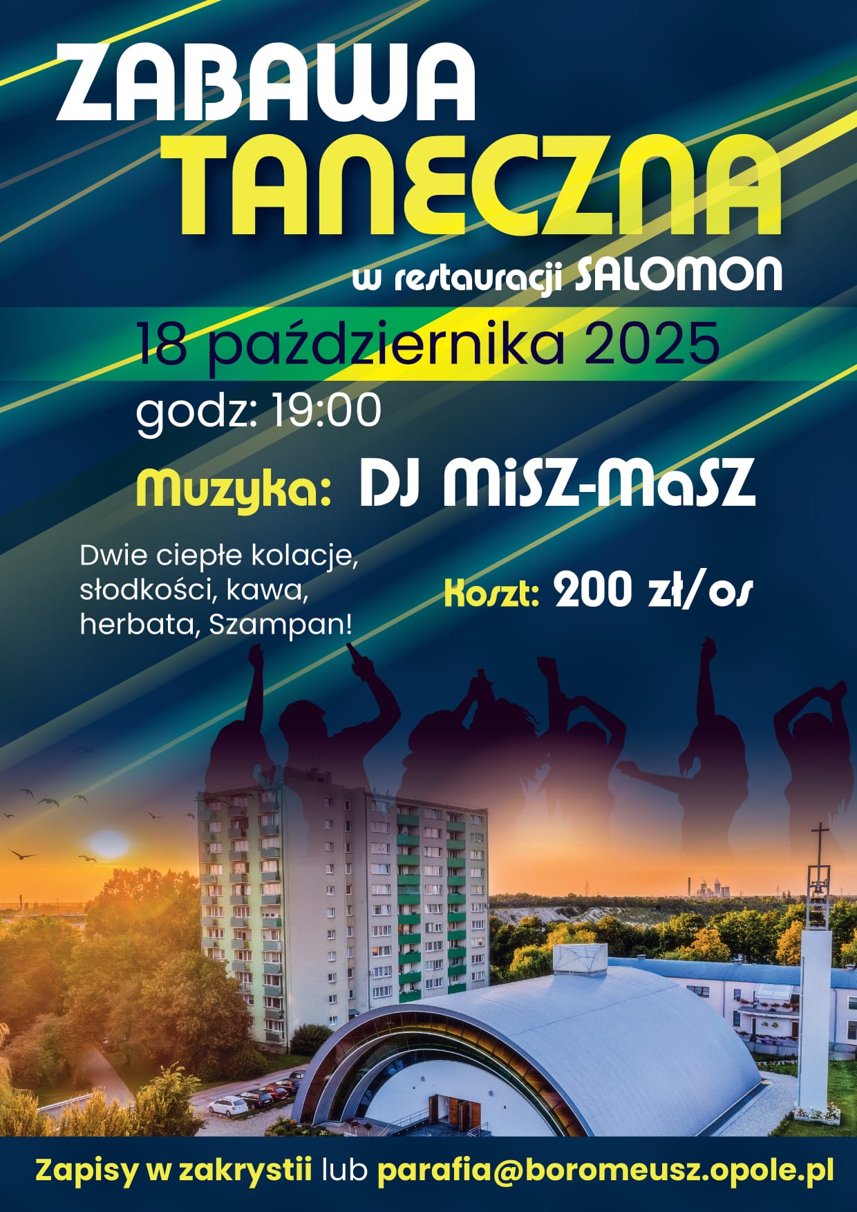 Zapraszamy do świętowania wraz z nami 25lecia powstania naszej parafii. Głowne uroczystośći odbęda się w sobotę, 20 września: o godz. 13.30 msza święta dziękczynna, a od godz. 16.00 piknik na terenach rekreacyjnych za plebanią. Zachęcamy też do udziału w jubileuszowej zabawie w sobotę, 18 października. Zapisy w zakrystii lub parafia@boromeusz.opole.pl